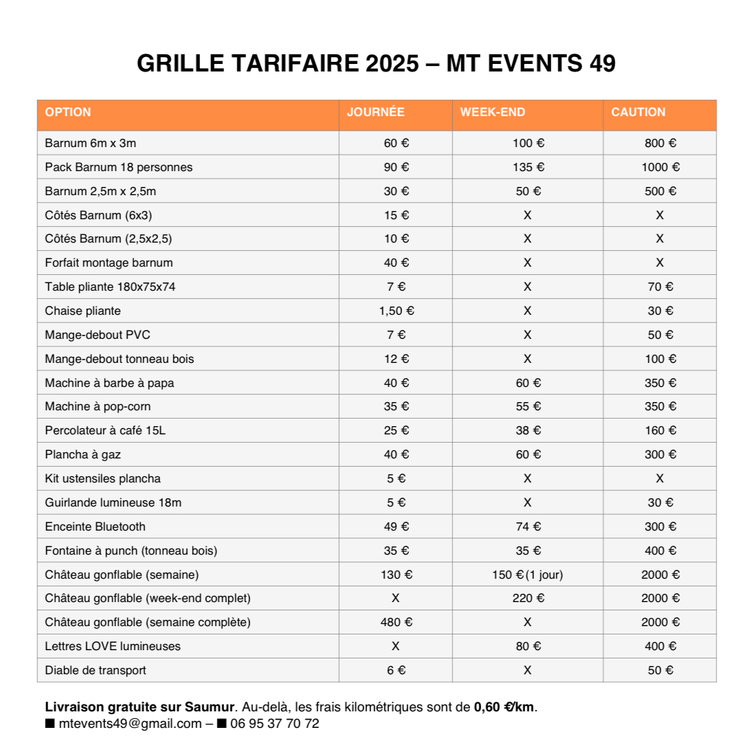 Oui ! Nous assurons la livraison et l’installation de tout le matériel directement sur le lieu de votre événement, à Saumur et dans l’ensemble du Maine-et-Loire (49).